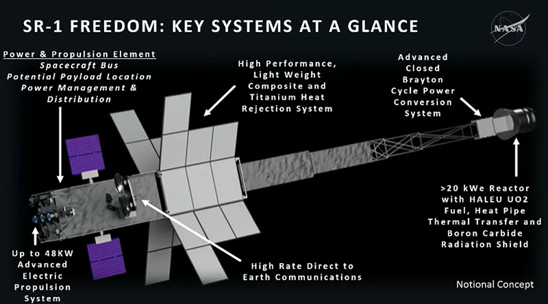 Аппарат SR-1 Freedom продемонстрирует возможность работы ядерной силовой установки с электрическими ракетными двигателями вдали от Земли. Ранее спутники с ядерными реакторами на обогащённом уране U-235 запускались только на земную орбиту (один экспериментальный американский реактор и советская серия аппаратов «Космос»). США намерены стать первой страной, отправившей станцию на ядерной установке прочь от планеты, что планируется выполнить в декабре 2028 года.